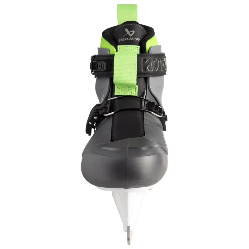 On the bottom of the skate, a plate platform attaches to Bauerโs patented VERTEXX Edge holder. This quick-release holder has an integrated trigger system that can be used to change runners in between shifts, making sure you never miss any ice time. Coupled with the VERTEXX Edge holder is LS3G+ 3mm stainless steel.