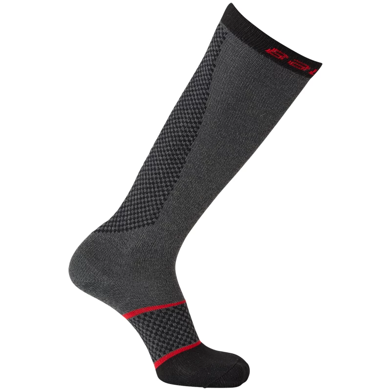 The Bauer Pro Cut Resistant Skate Socks are a light compression sock that feature DuPont KEVLAR cut-resistant fibers offering 360-degree skate blade protection from the knee down the calf and leg, around the Achilles heel, and through the top of the foot. This sock is also built with knit-in arch support, targeted mesh ventilation zones for added comfort, and a unique Y-seam construction at the toe area to improve fit and eliminate bunching inside the toe box.