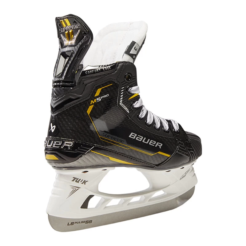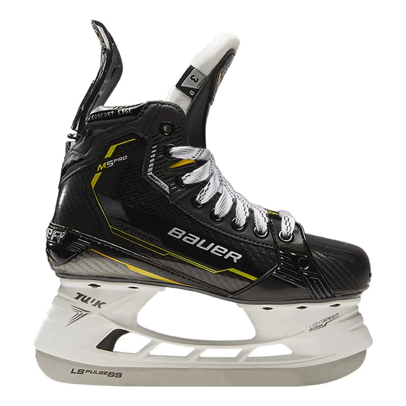 The Bauer Supreme M5 Pro Skate provides incredible power performance at unprecedented value. Built for elite powerful skaters, this skate delivers enhanced features in the boot construction and tendon guard, bringing elite level technology to each stride. Its 3D lasted Carbon Curv composite boot is fully thermoformable, giving you that game-ready feel with exceptional comfort, but also stiff and responsive in the lower portion for the ultimate energy transfer on each stride.