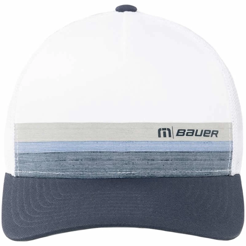 The GIMME SHOT mesh snapback hat combines TravisMathew signature style with the Bauer logo. Featuring distressed stripes across the brim and a two-toned design, celebrate your love of hockey with a subtle nod to the brand that started it all.