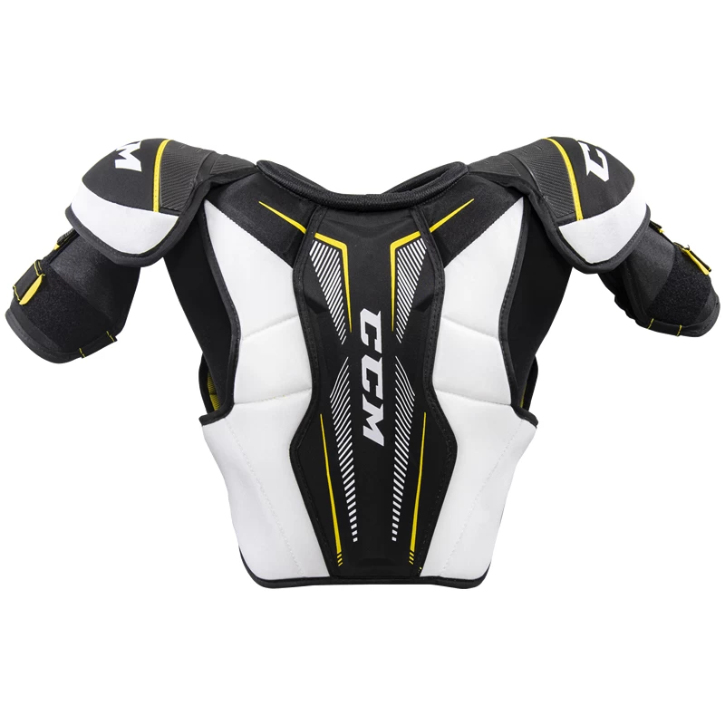 The CCM Tacks Vector Plus Shoulder Pads feature a molded front base jacket with a PE Foam construction for lightweight feel and good protection.