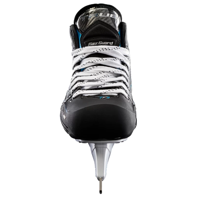 The TRUE TF9 Goal Skate is designed for goalies seeking the performance benefits and best-in-class fit that’s synonymous with TRUE skates. With its thermoformable carbon fiber one-piece shell, improved toe cap design, and adjustable asymmetrical tongue, the TF9 skate delivers superior fit and comfort in a lightweight build.
